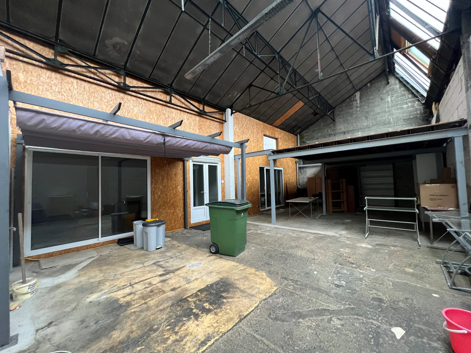 LOCAL PROFESSIONNEL comprenant espace de stationnement (3 véhicules), espace de stockage, 3 bureaux, wc et au 1er étage vestiaire + salle de pause avec cuisine aménagée, salle d'eau et wc