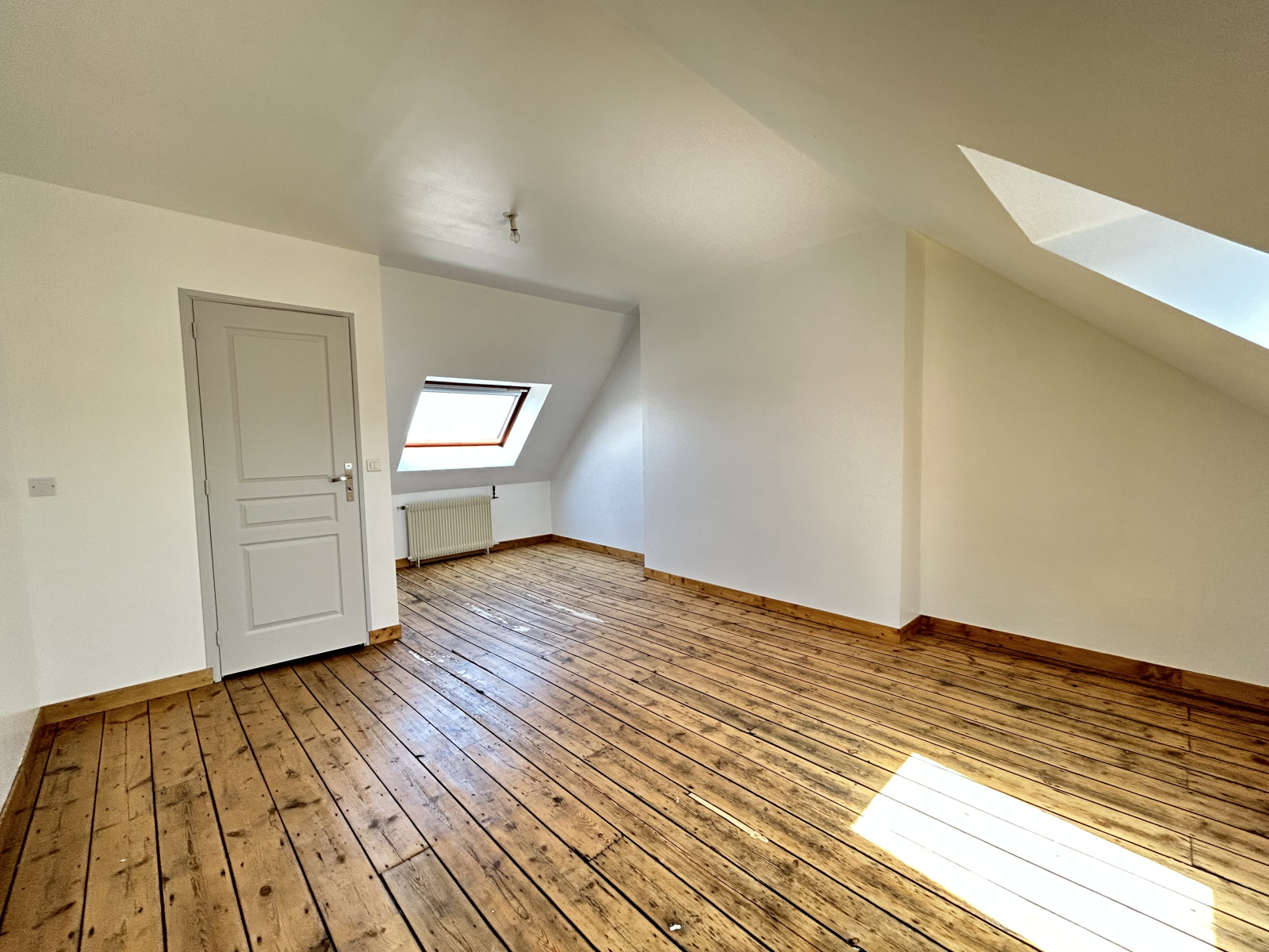 Au deuxième étage, une grande chambre mansardée d'environ 16 m2.